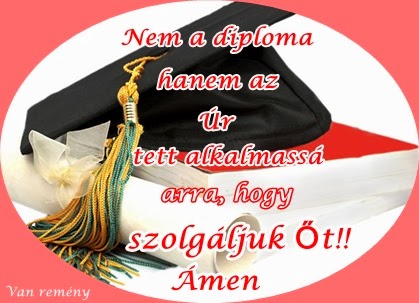 Ezzel a bizonysággal csak bátorítalak drága testvérem ha esetleg az tart vissza az Ige hirdetésétől,mert úgy gondolod, hogy te alkalmatlan vagy,mert nem rendelkezel érettségivel, diplomával, hogy az Úr nem a diploma szerint hívott el és választott ki magának bennünket. Ő egyedül a szívünket nézi. Nem a világ bölcsessége számít, hanem az Úré. Ő ad bölcsességet és Ő tett alkalmassá bennünket, hogy szolgáljuk Őt.